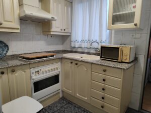 Este acogedor piso de 85 m2 tiene una distribución en ele. El largo pasillo articulas las estancias de la casa en dos habitaciones y un baño completamente equipado. La cocina, cómoda para tenerlo todo a mano, dispone de una galería donde poder tener la lavadora y una ventana en la que tender. El gran comedor, por su parte, es amplio y confortable, con salida a un balcón en el que pasar las tardes, tener plantas o cenar en verano.